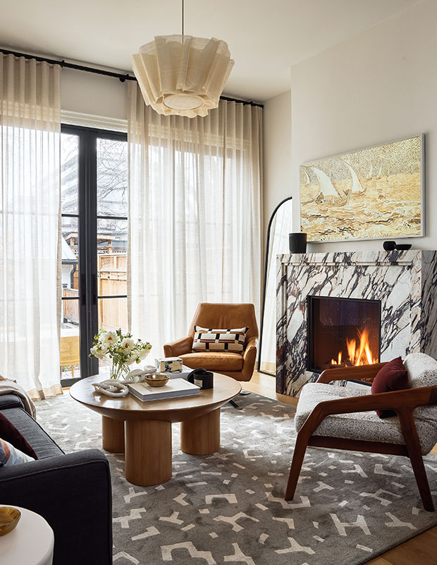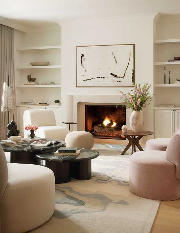 « Introduire des meubles, des textiles et des luminaires qui mélangent l’ancien et le nouveau crée une histoire multidimensionnelle dans un salon », explique la designer Haley Dermenjian du studio de design TOM.