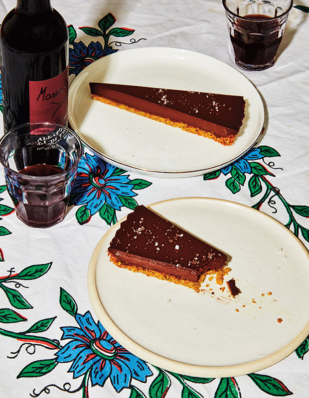 Une tarte riche et croustillante à la noix, créée par l’équipe du restaurant primé Elena, à Montréal.