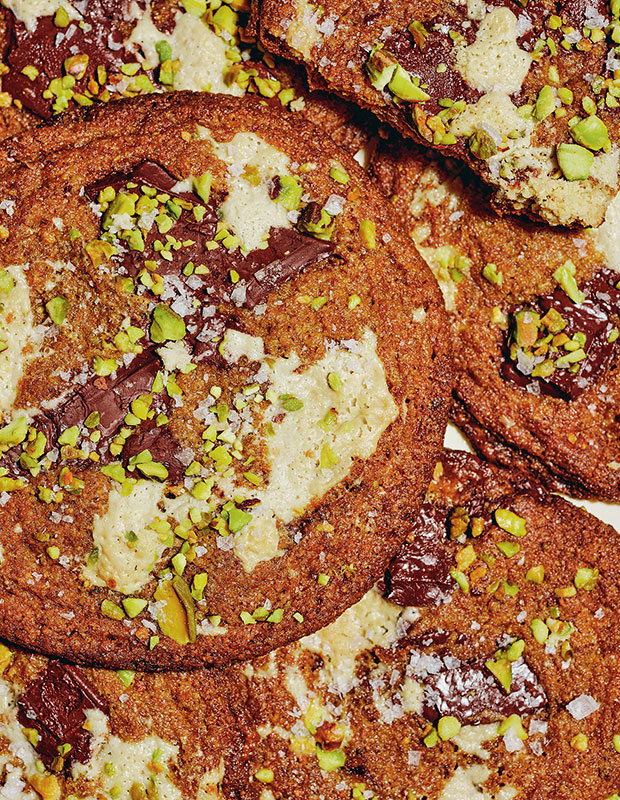 Biscuits au beurre noisette, pistaches et morceaux de chocolat halva
