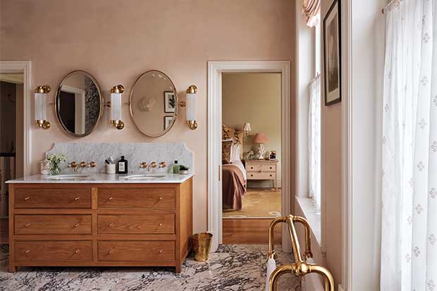 Amusez-vous avec le papier peint. Tapissez une salle d’eau avec un papier peint imitant le chinage par teinture, un look en vogue en Californie, afin de recréer un petit moment d’été dans la maison.