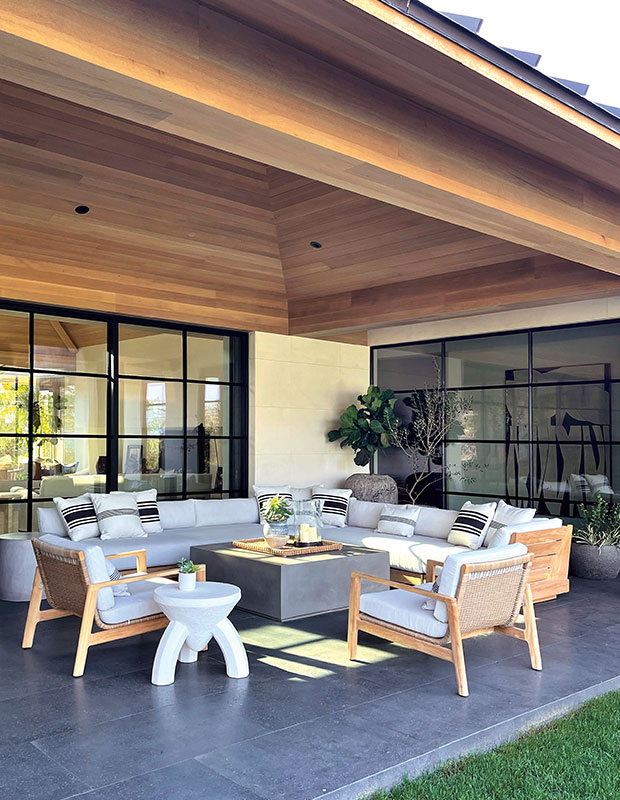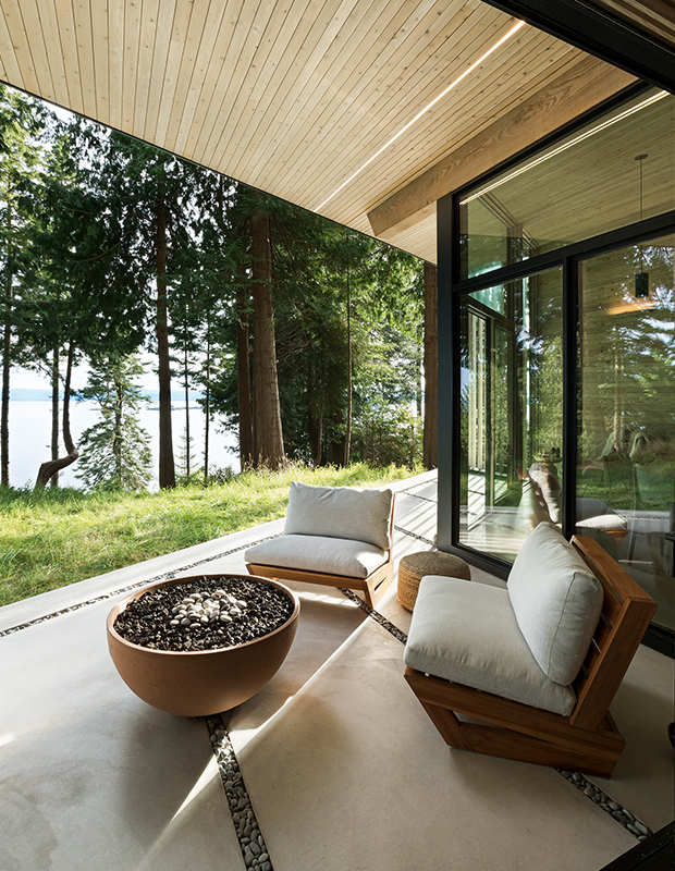 Rien ne rassemble autant les voisins qu’un feu crépitant lors des soirées fraîches. Installer un foyer extérieur vous permettra de prolonger les moments en plein air tout au long de l’été et jusqu’à l’automne. Ce foyer moderne a même inspiré la palette de couleurs de la maison de campagne du designer et architecte Patrick Warren, en Colombie-Britannique.
