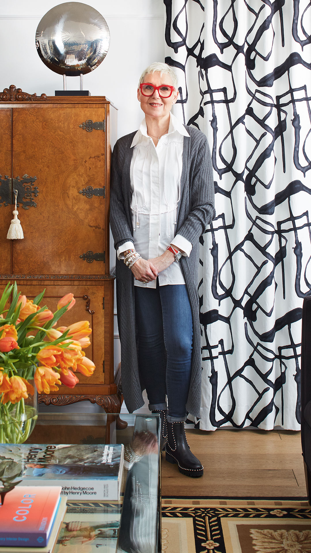 Près de l’entrée, Frida Kahlo domine la causeuse en velours émeraude, le tapis bleu pétrole et le lustre perlé. Cette pièce éclectique est la préférée des invités lors des soirées.