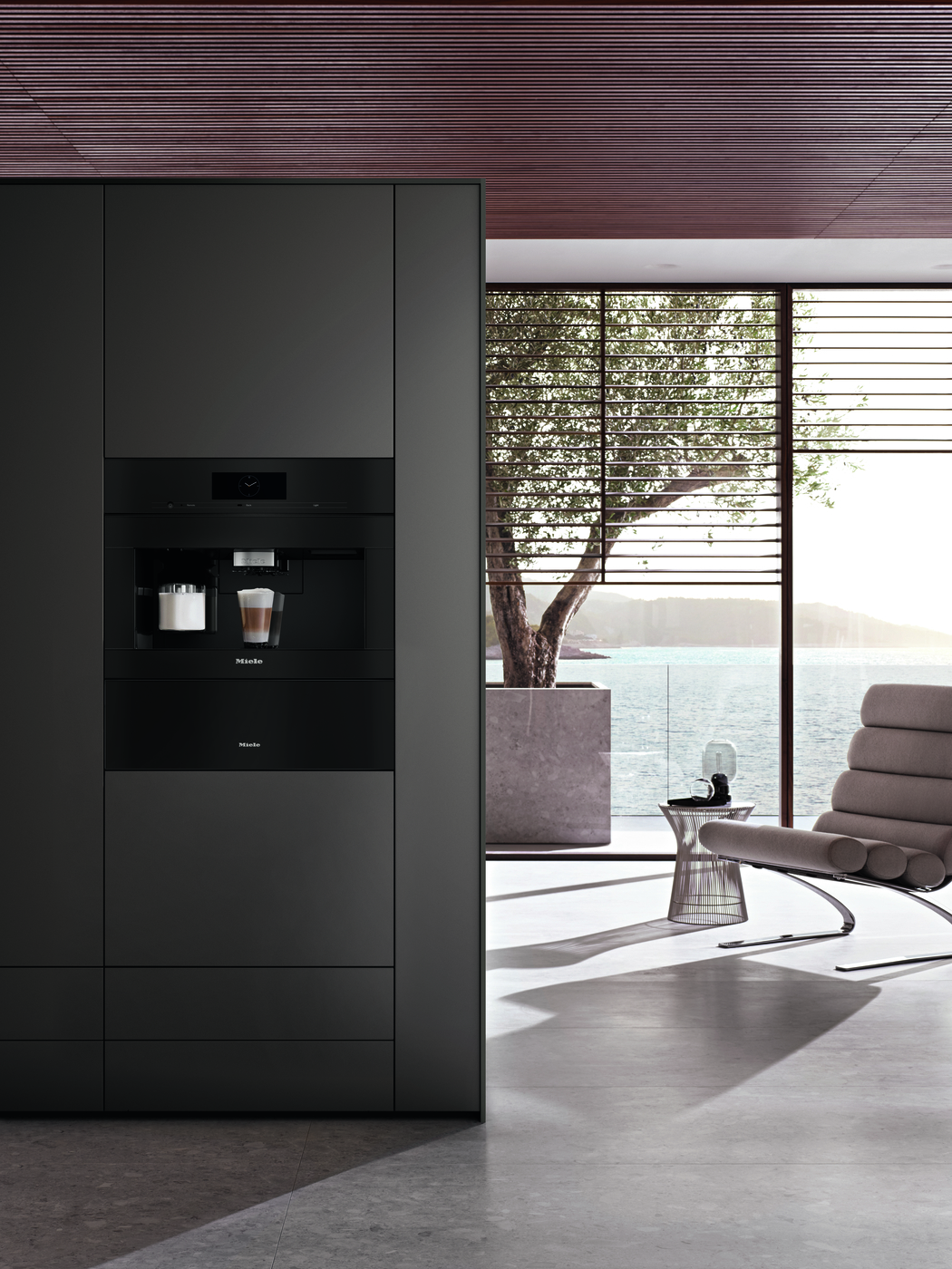 Pensée pour disparaître dans l’architecture, elle cache une technologie impressionnante : trois réservoirs à grains, nettoyage automatique nocturne, fonctionnement silencieux. Une machine presque autonome, qui rend encore plus fluide le rituel du café.