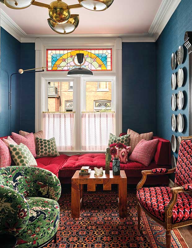 LR : Votre palette de couleurs riches et chatoyantes, l’utilisation intensive de moulures et la petite cuisine verticale donnent à cette maison l’aspect d’une maison de ville londonienne.
