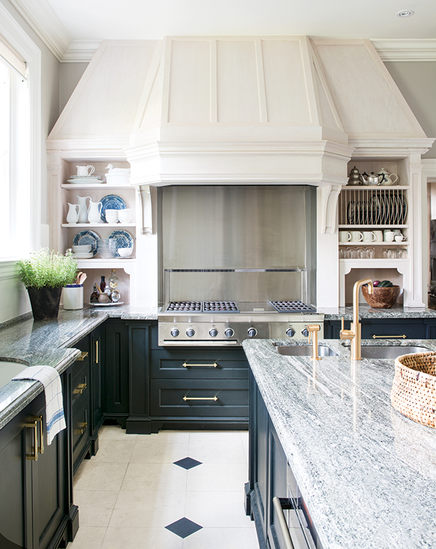 « Ma pièce préférée est la cuisine, pour sa beauté et son originalité », mentionne la propriétaire Geneviève Vachon. Les carreaux Tabarka faits à la main en provenance d’Espagne énergisent la cuisinière et les détails de laiton rehaussent les céramiques et l’œuvre d’art.