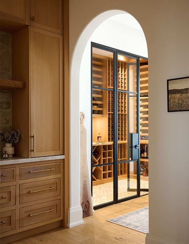 La cave à vin, réalisée par Rosehill Wine Cellars, est idéalement située juste à côté de la cuisine.