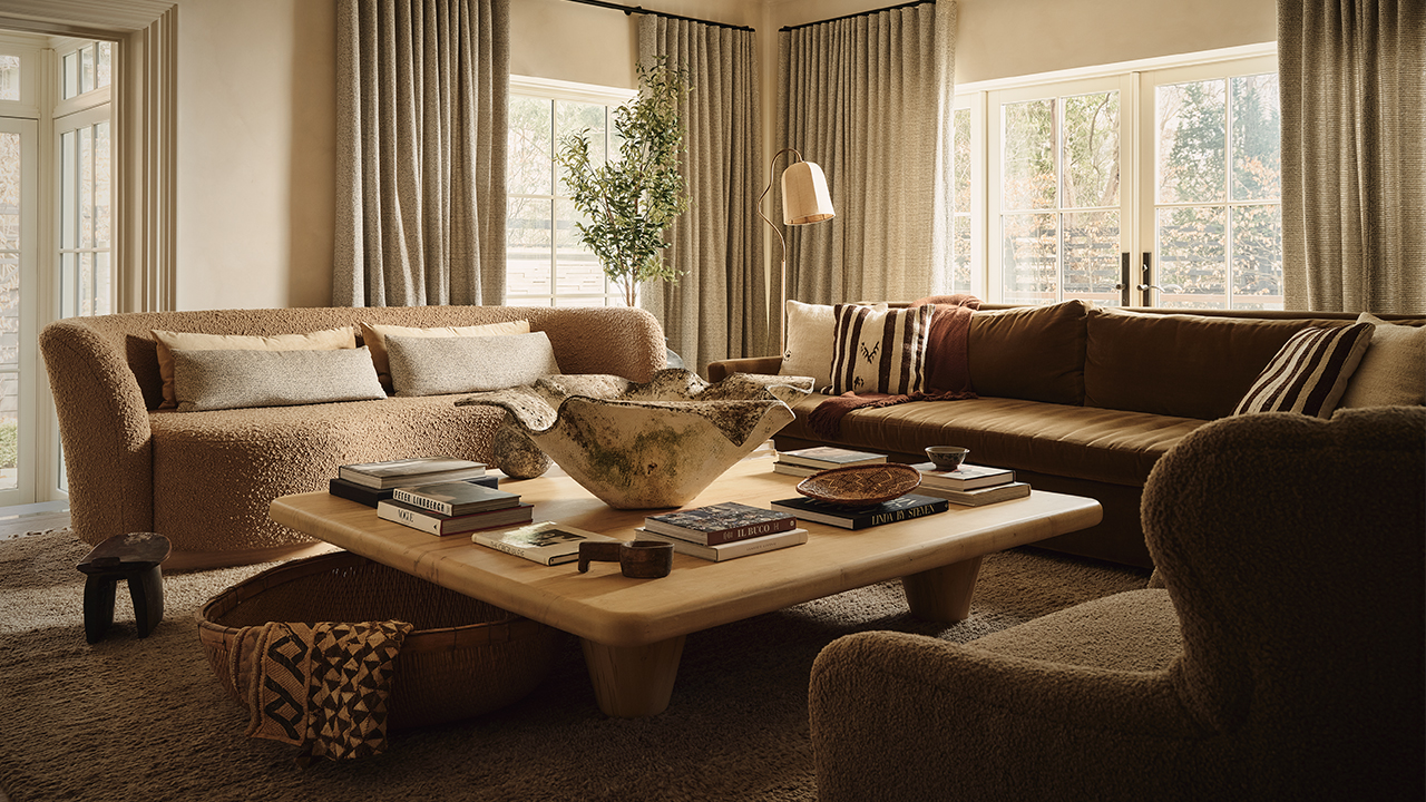 Le brun est en passe de devenir la nouvelle couleur neutre par excellence. Les designers utilisent cette teinte chaude dans la déco, les tissus d’ameublement et les textiles pour créer des pièces à la fois modernes et intemporelles. « Il existe tellement de bruns riches et magnifiques sur le marché, dans toutes les domaines, qu’ils sont tout simplement incontournables » explique Lynda Reeves dans le numéro 2026 Trends de H&H. « Les vêtements, les sacs à main, les chaussures, les revêtements de sol, les meubles et, bien sûr, les peintures, tout semble être disponible dans de magnifiques nuances de brun et de roux. » Même la couleur de l’année 2026 de Benjamin Moore, Silhouette (AF-655), est un brun riche et sombre aux nuances espresso et charbon, qui annonce une évolution vers des palettes plus profondes et plus naturelles. Des canapés brun chocolat aux coussins camel doux, découvrez comment les designers utilisent le brun pour créer des intérieurs qui sont tout sauf ternes.