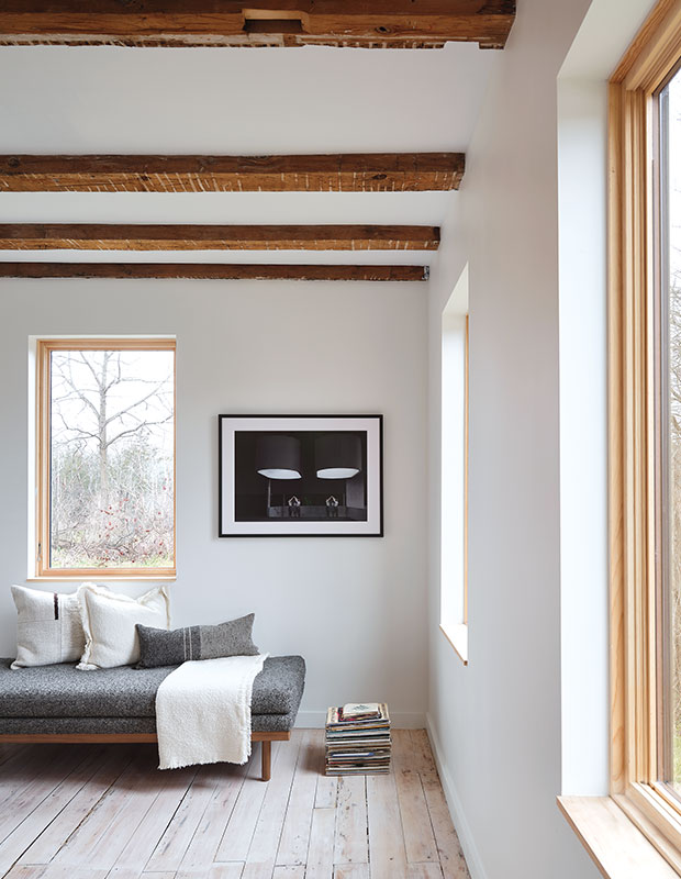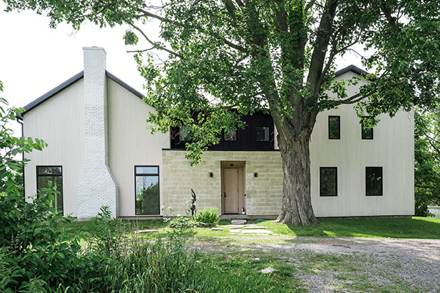 La maison de style farmhouse Cronk se trouve à North Port, en Ontario, une communauté peu connue du comté de Prince Edward, mais qui regorge d’histoire. La tradition veut que la plupart de ses colons aient été des quakers (membres de la Religious Society of Friends). Il est probable que la famille Cronk, qui a construit cette ferme en 1802, faisait partie des Loyalistes de l’Empire-Uni qui avaient immigré au Haut-Canada. Si ce patrimoine historique n’était pas le principal motif d’attraction pour les propriétaires Jodie et Jesse Merson, qui possèdent également une maison à Toronto, c’est assurément la raison pour laquelle la maison porte encore le nom Cronk, plus de deux siècles plus tard.