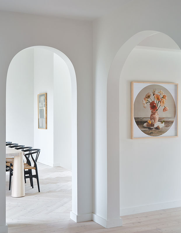 Les arches de l’entrée adoucissent les passages vers les pièces de vie principales.