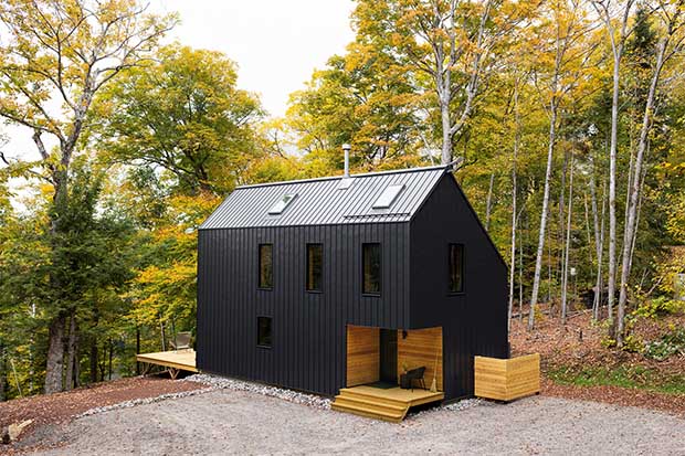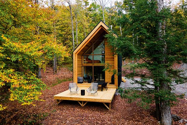 Un chalet préfabriqué scandinave aménagé en parfait refuge moderne en forêt